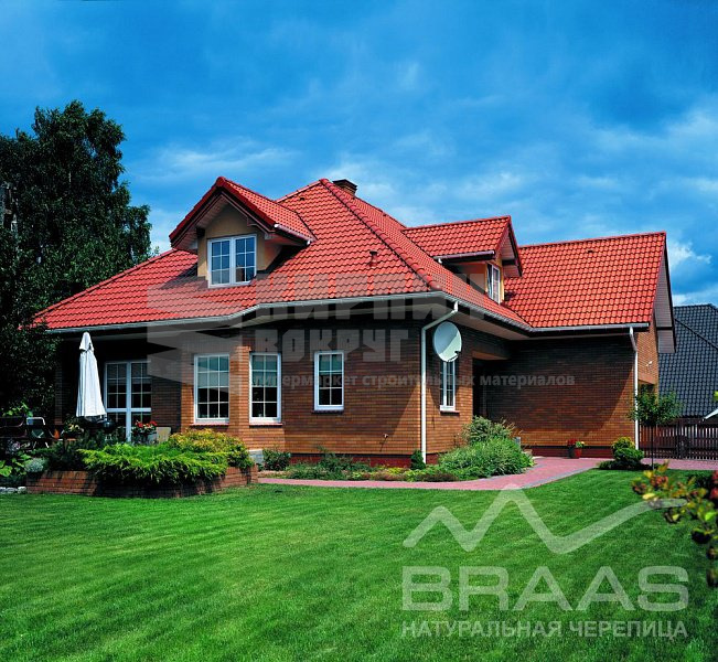 Цементно-песчаная черепица Braas Янтарь имеет плавную волну профиля, что создает полную гармонию с окружающей природой, а высококачественные материалы используемые при ее производстве обеспечивают долговечность эксплуатации крыши. Черепица Braas Янтарь - долговечна, экологична и устойчива к перепадам температур. Срок службы такой черепицы около 100 лет, тем самым установив ее на крышу вы надолго забудете о проблемах с крышей.