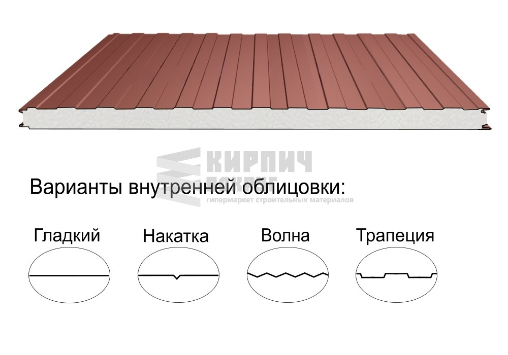 В интернет-магазине "Кирпич Вокруг" Вы можете купить Стеновая трёхслойная сэндвич-панель трапеция 50мм 1190мм с видимым креплением пенополиизоцианурат Полиэстер Металл Профиль в Серпухове, а наши специалисты готовы вам помочь с выбором по адресу: , или оказать консультацию по телефону: .